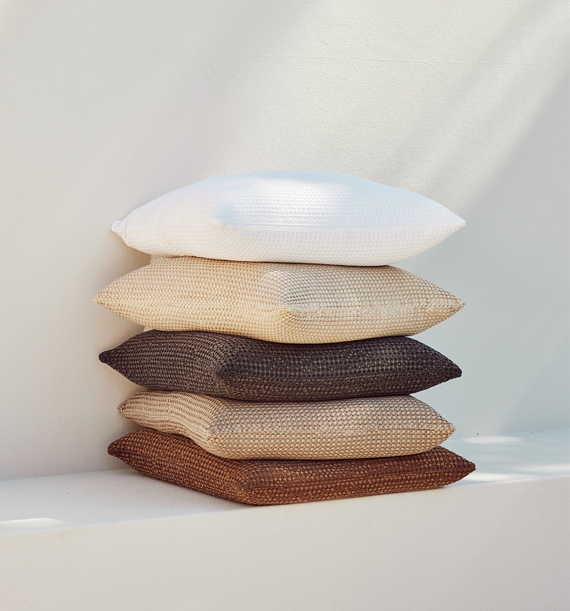 waffle pillows in various tones &textures to add a touch of accent to your space